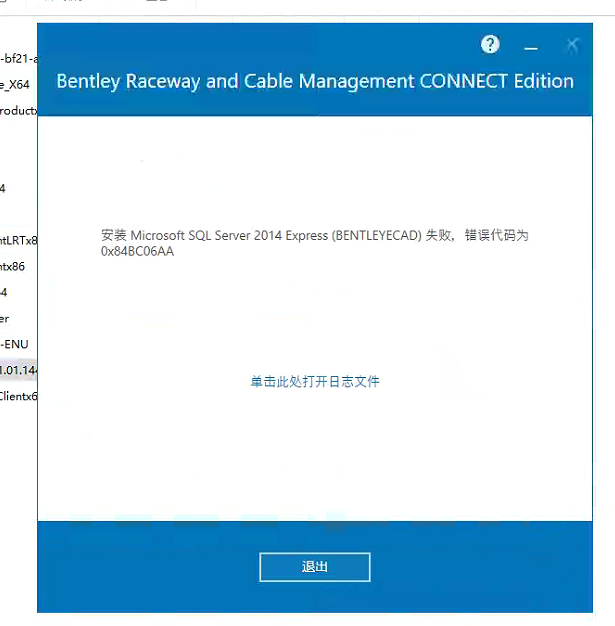 安装 Microsoft SQL Server 2014 Express(BENTLEYECAD)失败,错误代码为0x84BC06AA: