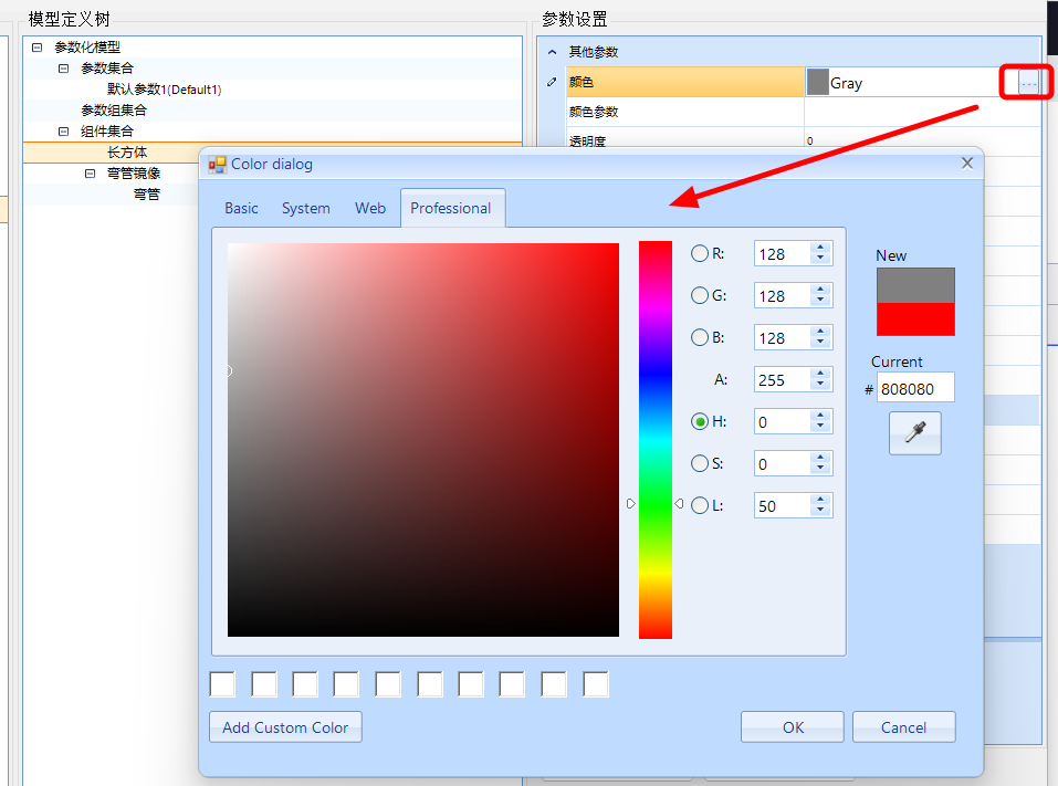 (2)其他参数:图元通用参数,主要为颜色与透明度;