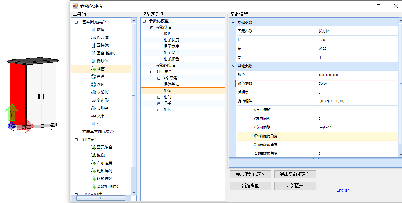 d.旋转矩阵:图元/组件的矩阵参数,用于设置图元/组件基于原点的绝对偏移与旋转状态。