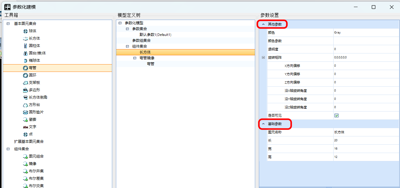 (1)基础参数:包括图元名称与图元的驱动参数,一般由图元的几何属性决定,是绘制图形所必须的构成;