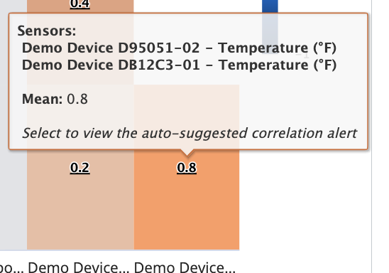 Hovering over a graph bar will open a popout with information about the two sensors.
