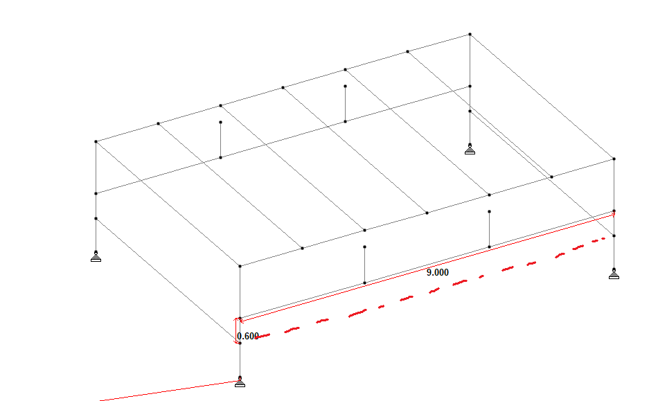 构建一个简易模型辅助说明:模型中包含左右两组结构,其中左侧结构距支座节点的距离为1m,右侧结构距支座节点的距离为0.5m。