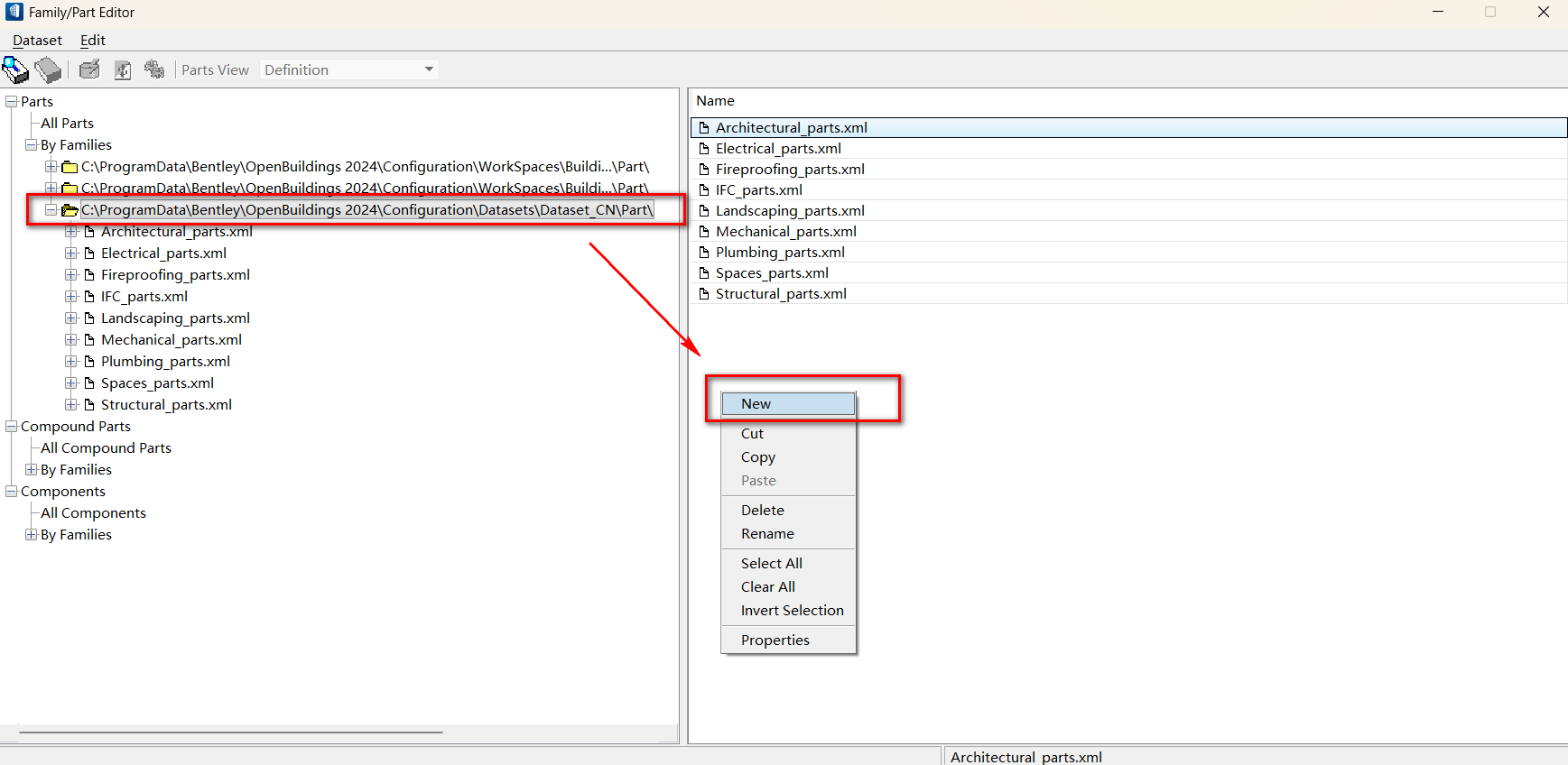 2.点击下图中的的文件路径,在窗口右侧空白处点检鼠标左键,在弹出列表中点击新建(如果不需要新建专业目录请忽略此步骤)