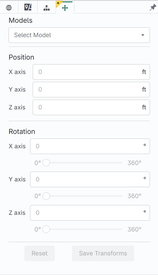 Once you are satisfied with your adjustments, click Save Transforms to apply the changes. If you choose to Reset or close the application without saving, no changes will be made to the iModel.