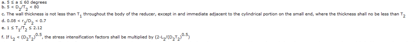 W2261-87: B31 App J: The reducer ratio T1/T2 should be less than 2.12. The program will continue to use the provided geometry /异径接头比率 T1/T2 应小于 2.12,程序将继续使用所提供的几何图形。