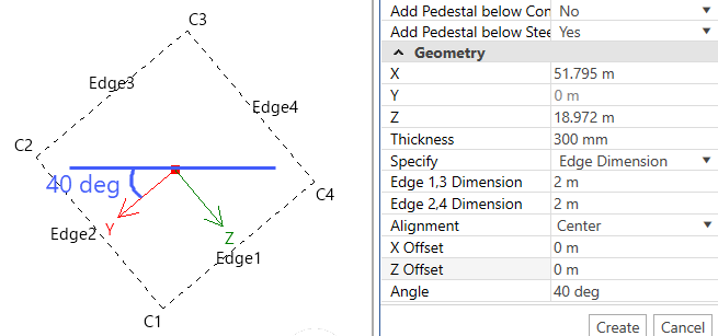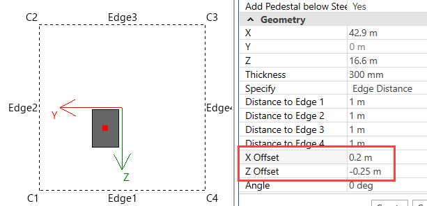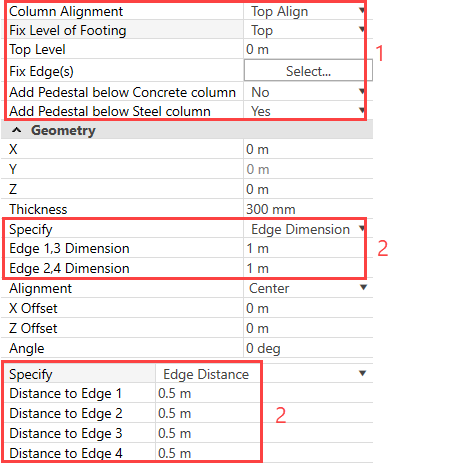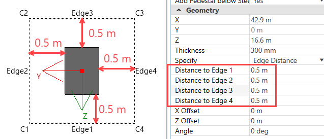 • 边缘距离——指定柱/基座表面到独立基础边缘的距离(适用于所有边缘)。