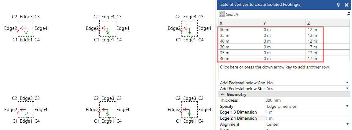 iii. 表格(Table)——通过指定独立基础重心坐标创建,可粘贴Excel格式的重心坐标数据至表格。
