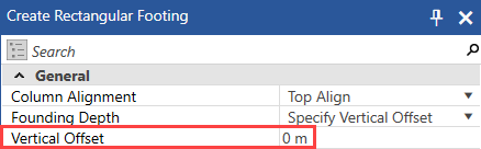 • 指定垂直偏移——属性页将显示“垂直偏移”字段,可指定柱/基座底部与基础顶面/底面的垂直距离。