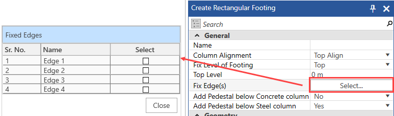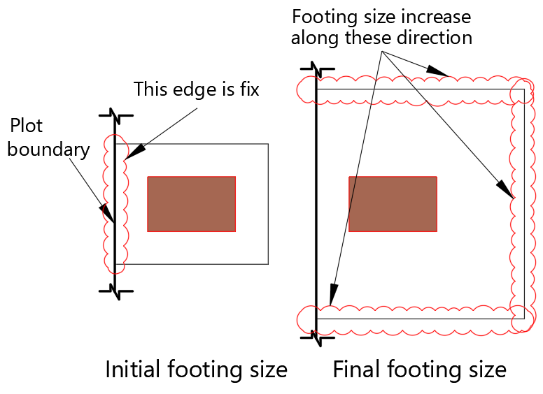 1. 除“固定边缘(Fix Edge(s))”选项外,其余标记项与筏板基础部分一致。若场地限制导致独立基础某侧尺寸无法超过特定值,可使用此选项固定边缘。