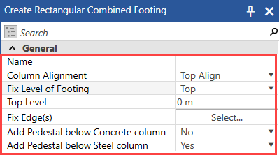ii. 对象(Object)——通过选择两个或多个柱/基座创建联合基础,需指定以下参数: