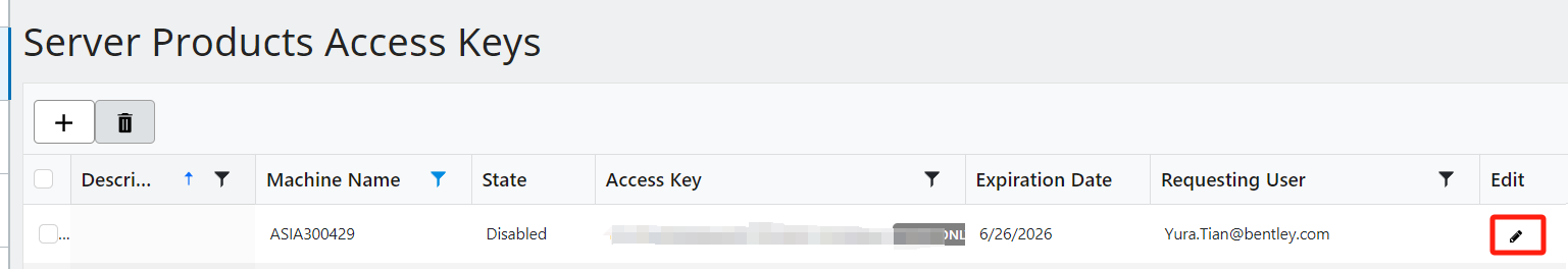 - 注意:密钥本身和绑定的机器名称无法修改。
