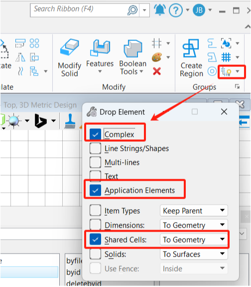 2. 然后使用Drop(打散工具),勾选如下三个选项,将cell打散成solid和surface,这样就可以统计出面积了: