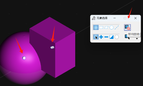 原因是将元素选择工具的“禁用图柄”打开了,点击一下这个图标,将其关上就好了: