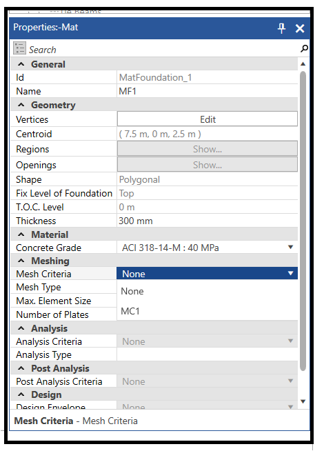 您可以创建多个网格划分标准,但每个筏板必须分配一个标准才能成功执行网格划分。点击筏板,在“属性:筏板”窗口中为其分配网格划分标准。