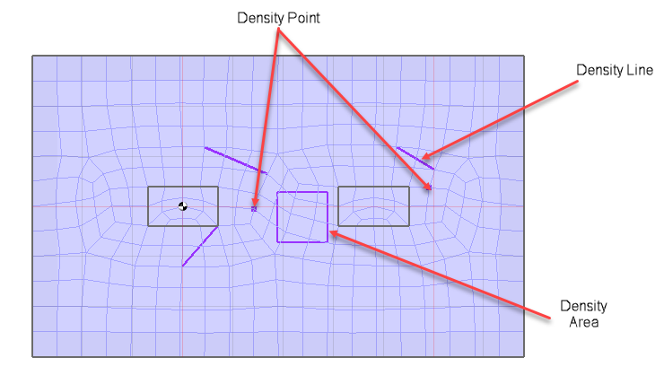 可以在基础上添加密度点、密度线和密度区域来修改网格大小和形状。程序会参考这些修改器,调整网格大小和形状以更新网格。