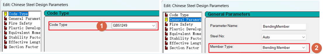 - 进入中国钢结构设计模块,选择 GB51249 规范;