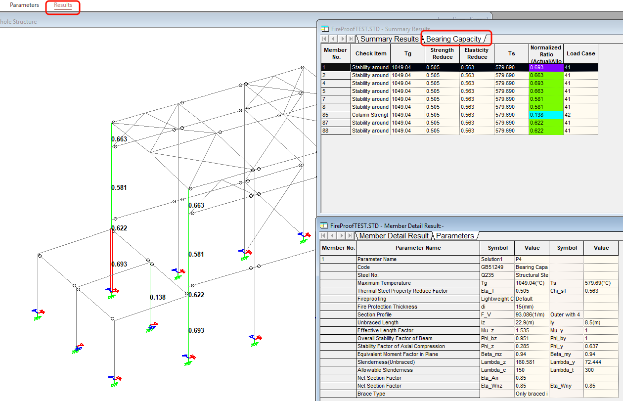 - 温度 - 时间曲线、承载力折减系数等详细数据;