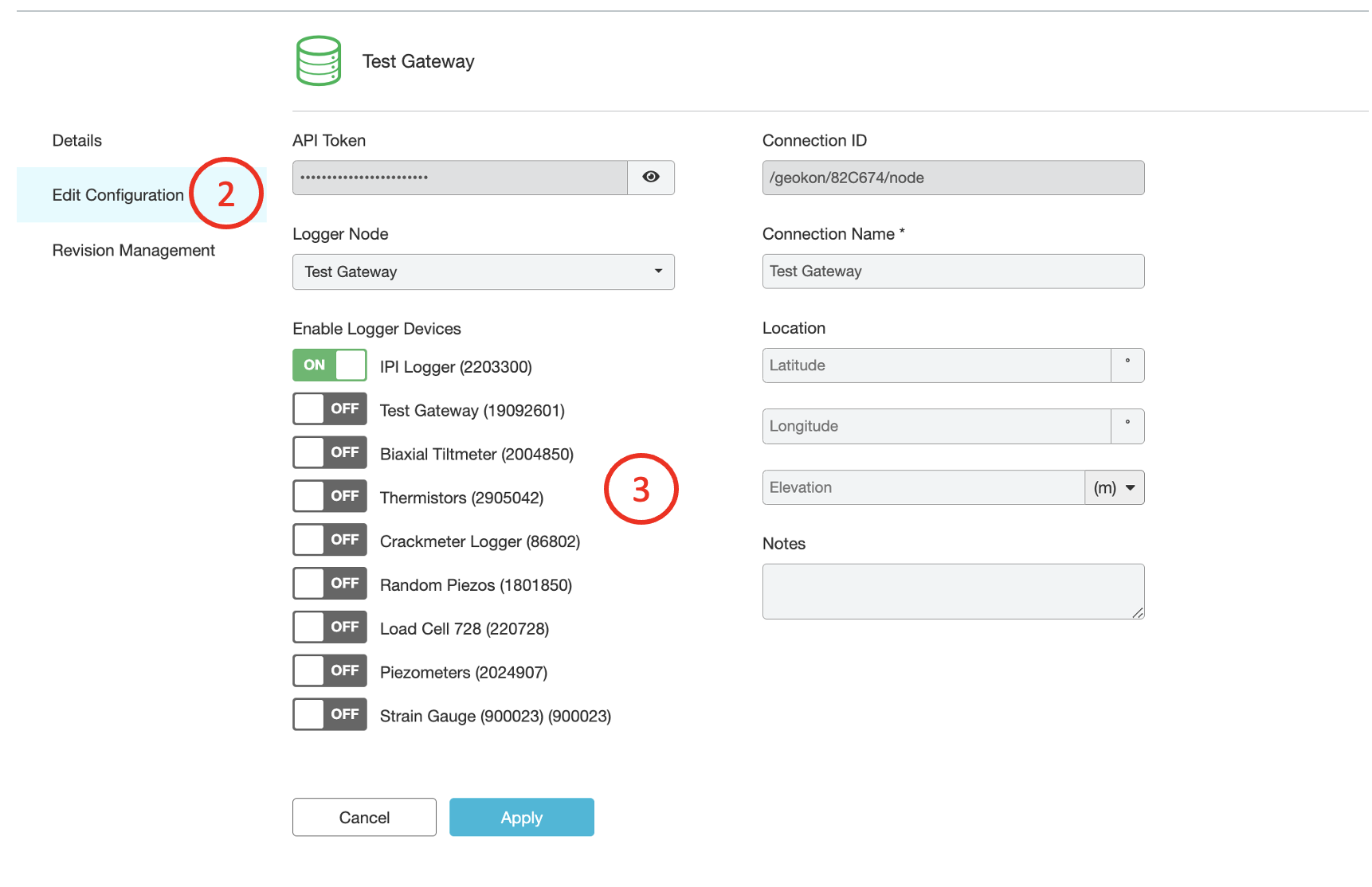 6. The next page allows you to select the Logger node you would like to add to the asset. Click the blue "Apply" button. You will then be directed back to the Connectivity Page.