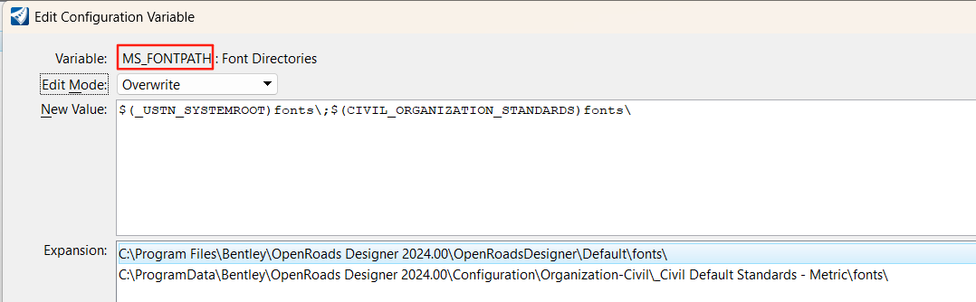 其次,字体文件的位置。OpenRoads Designer 会在 Windows 系统字体目录(% SYSTEMROOT%\Fonts)和配置变量 MS_FONTPATH 所指定的目录中搜索 TrueType 字体。一般而言就是 C:\Windows\Fonts 以及下图显示的路径里。