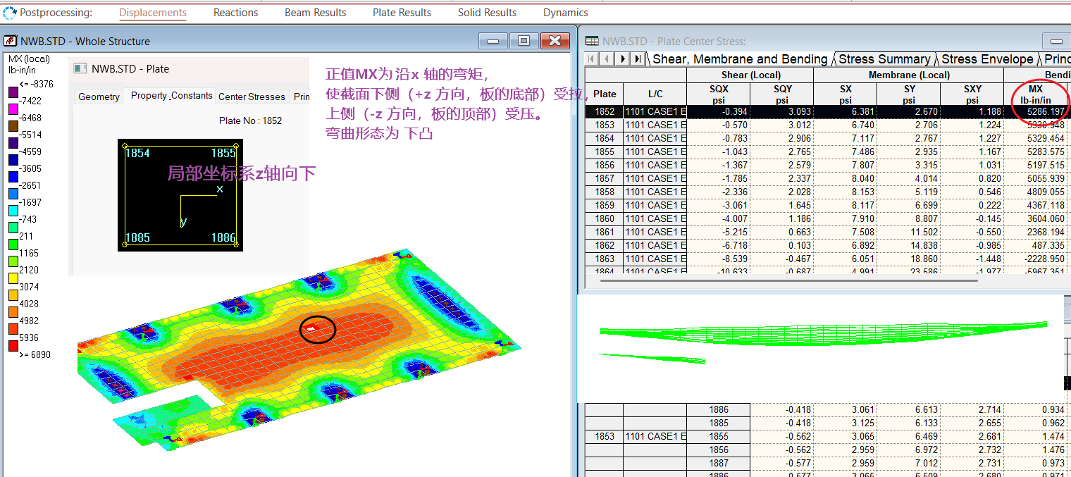 - 需根据板单元的实际局部坐标系方向判断弯矩正负的物理意义。