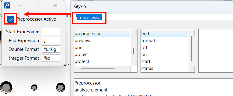 第一次Key-in:Preprocessor on;或者Preprocessor,打开对话框,勾选preprocessor: