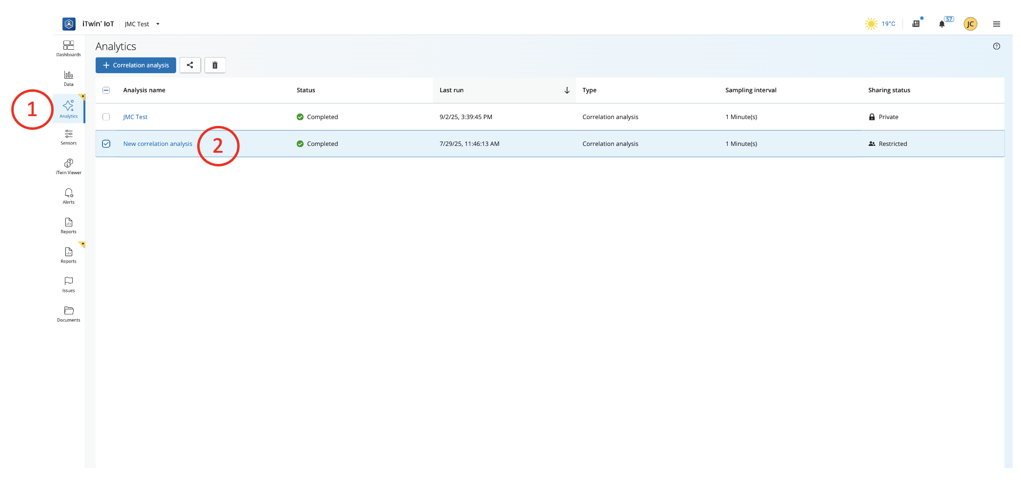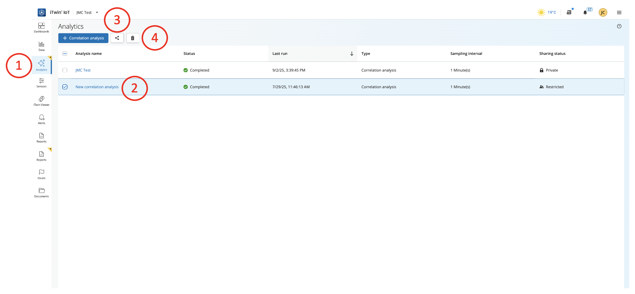 Analyses can be controlled from the main Analytics page.