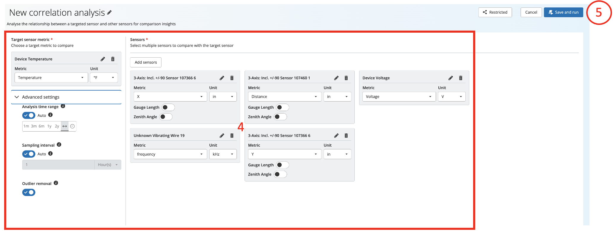 4. You can review your analysis settings, change sensors, or adjust parameters from this page.