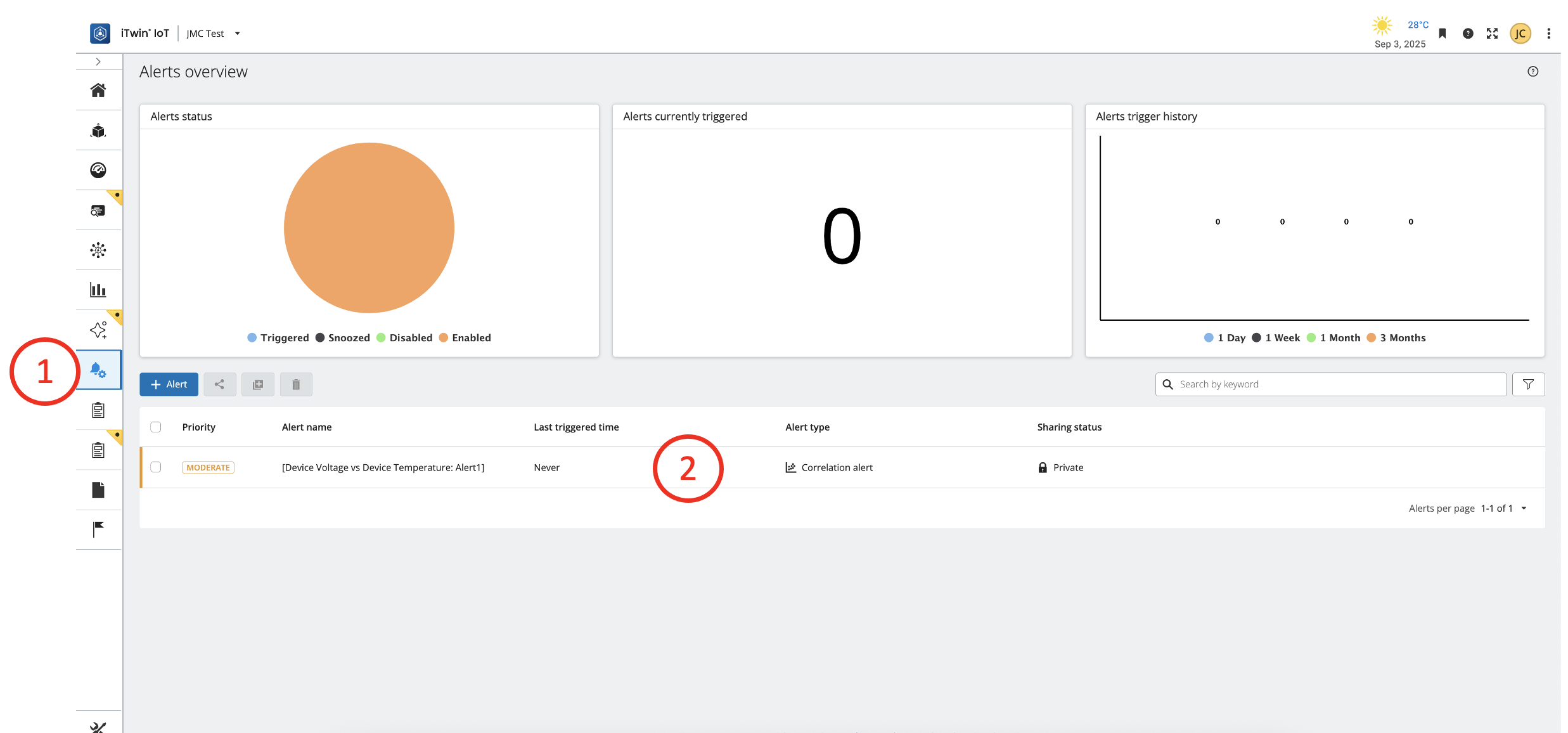 1. Navigate to the Alerts module by clicking on the Alerts icon on the left sidebar.