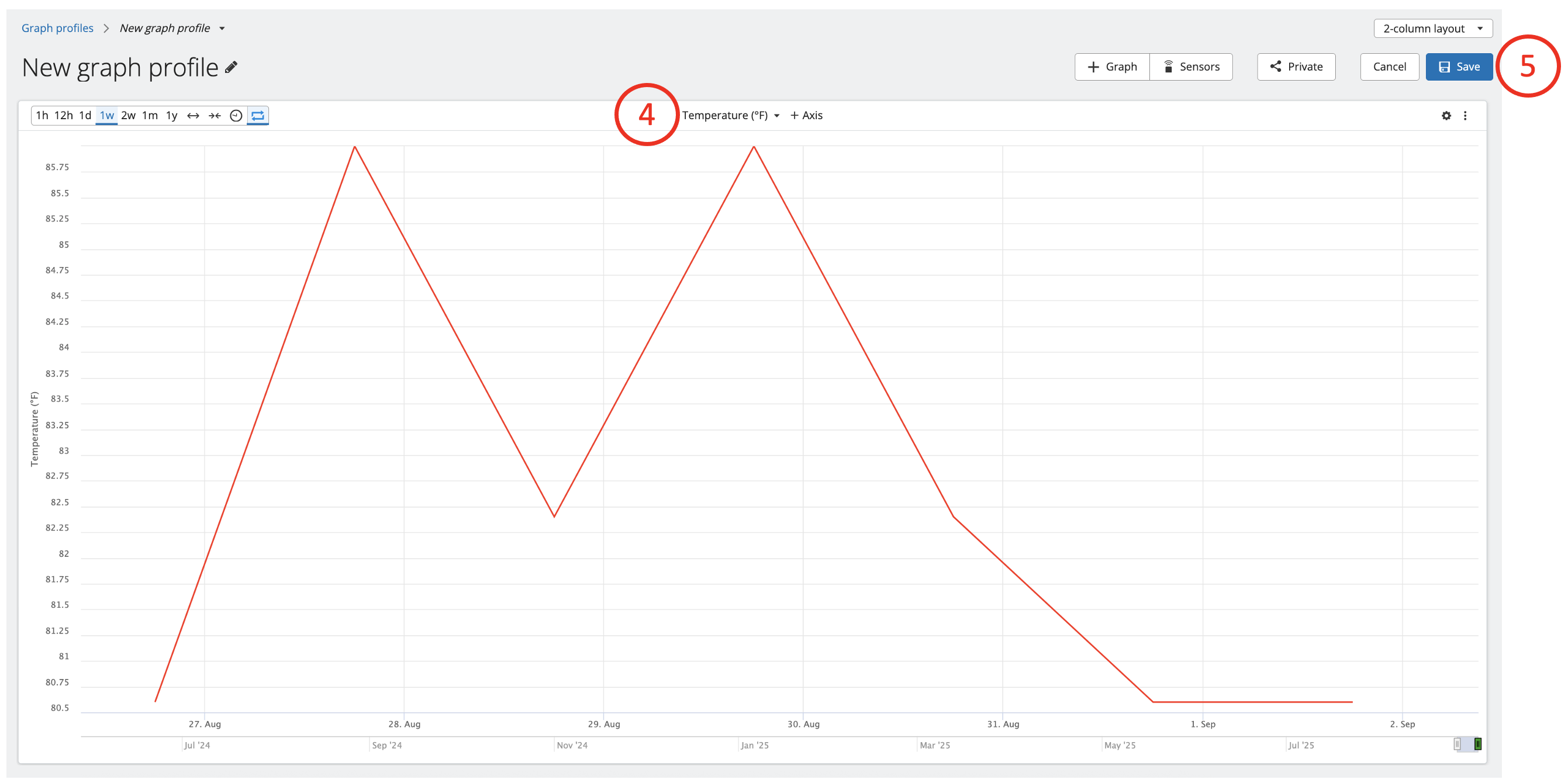 5. Save- Clicking the blue "Save" button on the upper right side of the screen will save your created and configured graph profile.