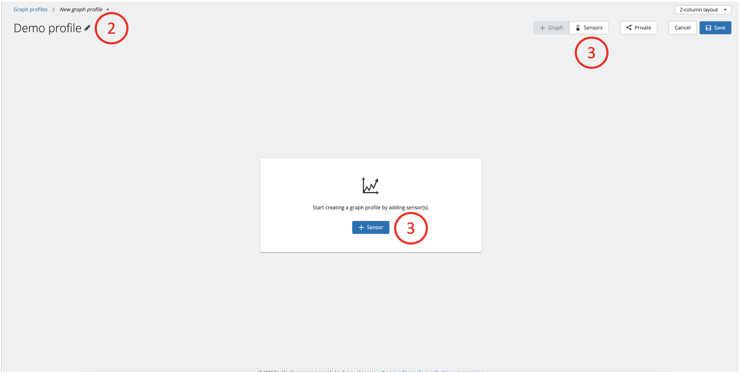 1. To create a new Graph profile, click the blue "+ Graph profile button. This will take you to the Graph profile configuration and visualization page.