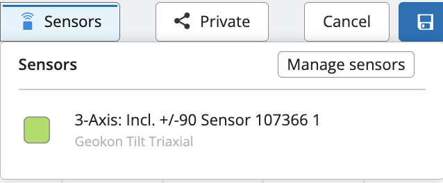 You can also add or remove sensors at any point by clicking the "Sensors" button on the upper right of the screen, then clicking the "Manage sensors" icon in the dropdown box.