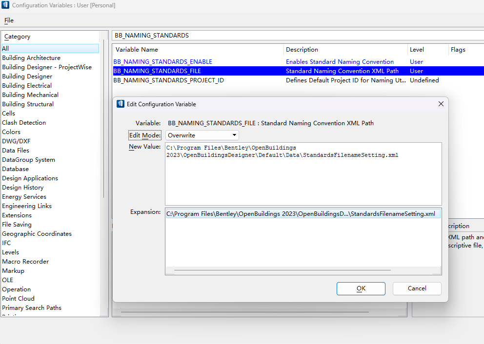 2.定义命名规则xml文件,默认的规则文件保存在如下路径:C:\Program Files\Bentley\OpenBuildings 2023\OpenBuildingsDesigner\Default\Data\StandardsFilenameSetting.xml。您可以更根据自己的需求在此文件的基础上进行修改。