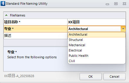 在一个项目中,工程师往往需要设置项目文件的命名规则,以便更高效的管理项目文件,避免文件的混乱。那我们在OBD中该如何设定项目dgn文件的命名规则呢?在OBD中我们为用户提供了一个文件命名标准实用工具,以便您快速创建标准文件名。