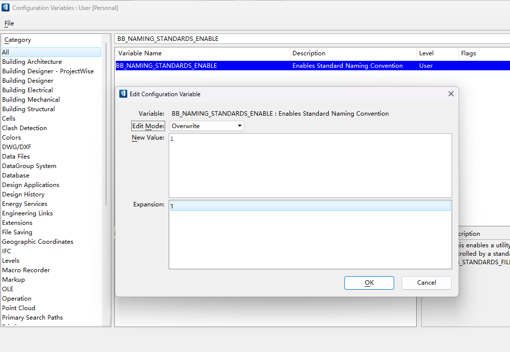 3.通过设置变量:“BB_NAMING_STANDARDS_ENABLE”的值为上述路径,可以调用默认的xml规则文件