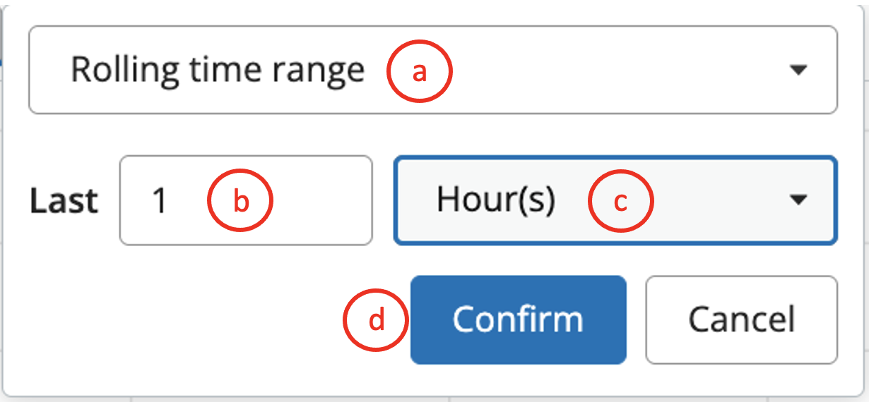 a.- The configuration dropdown will allow you to select "Rolling time range".