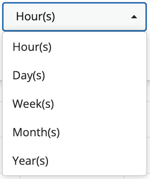 c.- The time metric dropdown allows you to select a unit of time measurement that is used in conjunction with the number input in the previous step to define the time length of the X-axis for the graph.