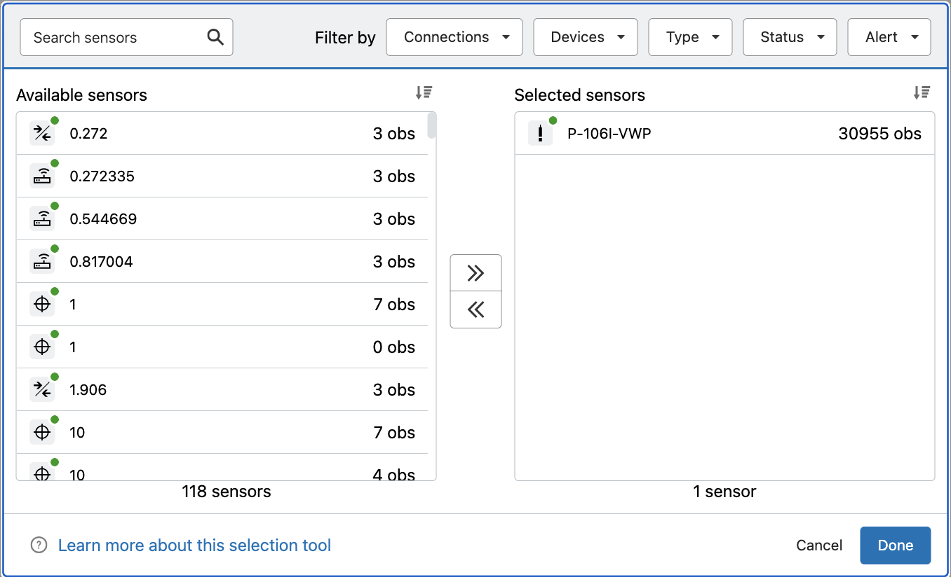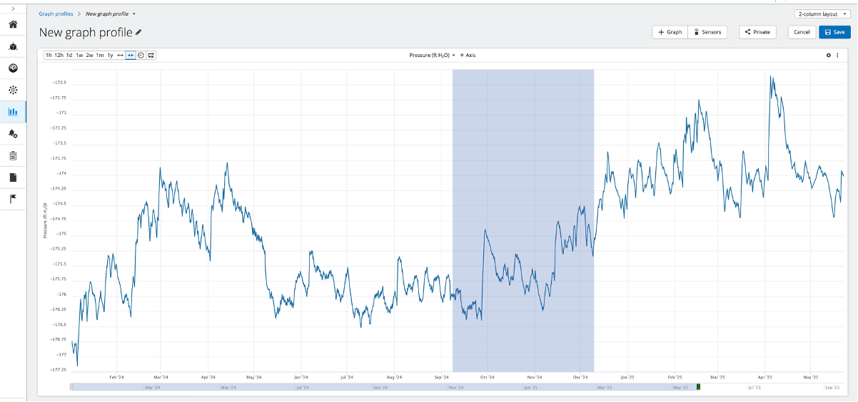 Fit- The Fit button automatically adjusts the time frame from the earliest datapoint of the selected sensors to the most recent datapoint of the selected sensors.