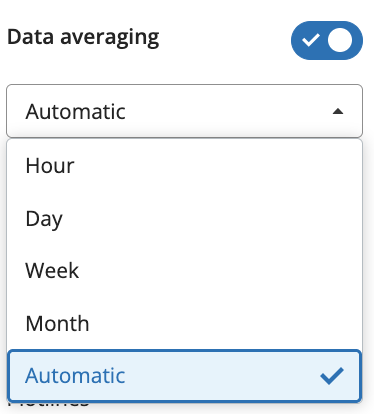 6. Data averaging- Data averaging allows you to reduce the number of data points graphed or smooth out data by averaging the data over a selected timeframe, from hour to month. There is also an automatic averaging function that automatically selects a data averaging timeframe for you.