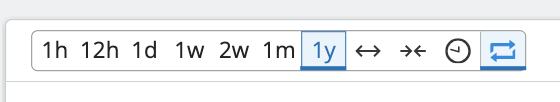 Sync/Desync Graphs- The last button on the Time Picker bar is the graph sync button. This button allows you to match, or sync, the data display timeframe for multiple graph panes. Once enabled, all graph paness will sync to the same X-axis timeframe. The button is set to off by default, but clicking the button will turn the button to enabled, looking like this