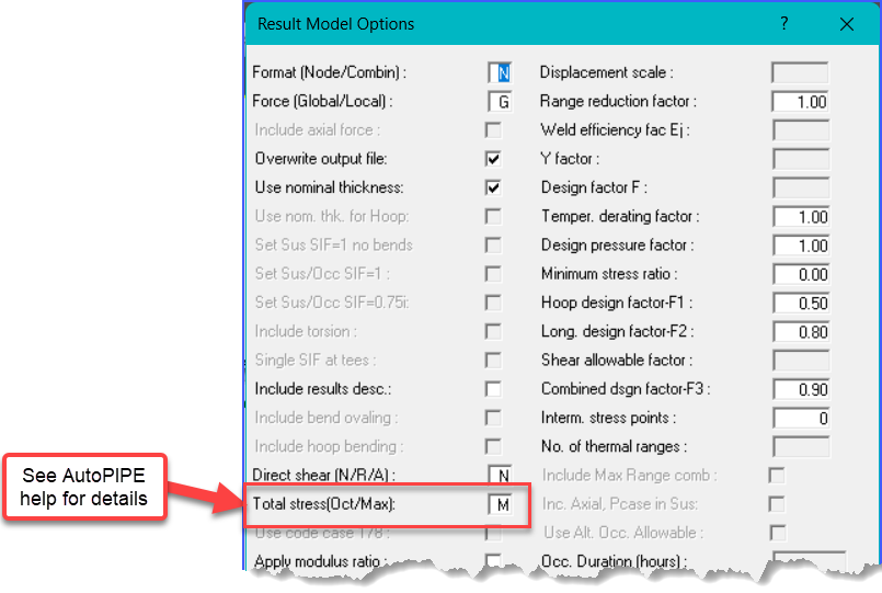 And No, the user must update the Results model Options setting for " Total stress (Oct/Max)" to indicate the type of stress reported.