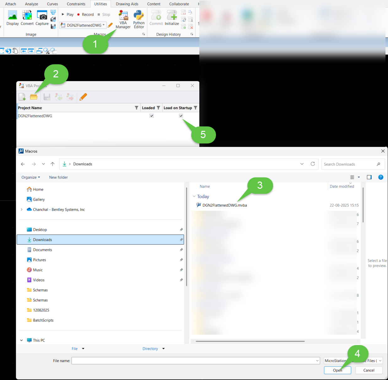 · Place the VBA file (.mvba extension) in the MicroStation configuration directory. Set it to 'Load on Startup' to ensure it runs automatically when files are opened.