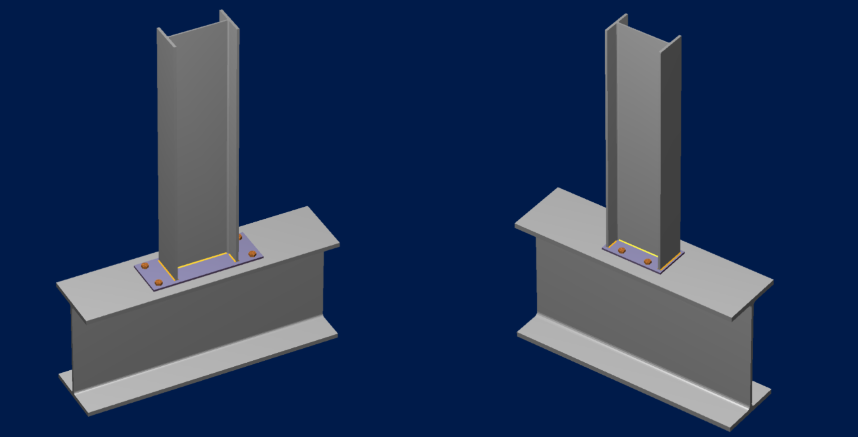 This configuration addresses design scenarios without column continuity, such as dunnage-type frames on roofs, where the column terminates on top of a supporting beam instead of extending continuously below. The new connection type models the load transfer from the column into the beam through a bolted plate, considering shear, axial, and flexural effects.