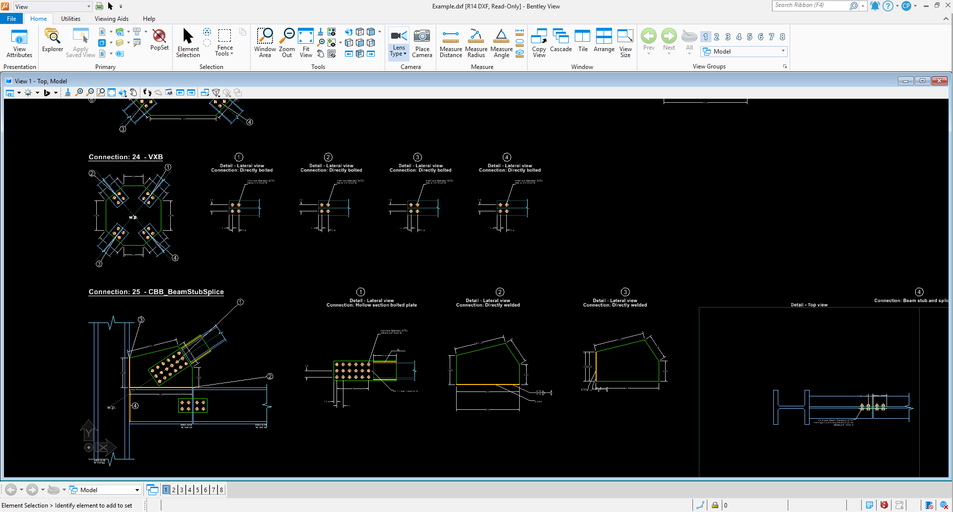 When multiple connections are included, the generated DXF organizes them view vertically, ensuring that drawings are arranged without overlap.