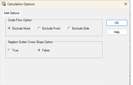 - Option to neglect Gutter Cross Slope for grate or combination inlets on grade