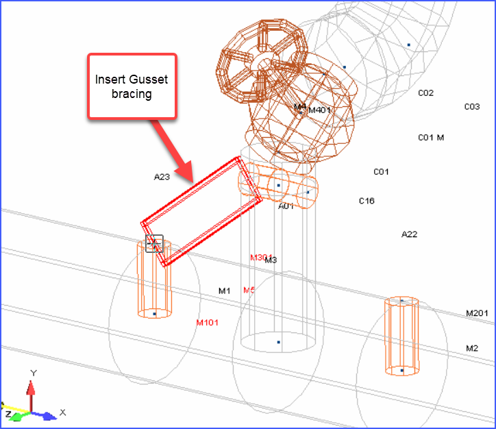 Make any adjustment to the Beam Id definitions, or surface connection points as needed to closely mimic actual gusset support design.