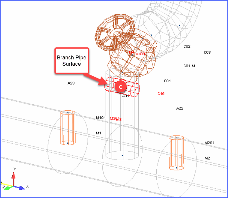 In short, this modeling approach will focus on adding a beam section from the surface of the header pipe to the surface of the branch pipping. Then insert a beam section between the surface points established.