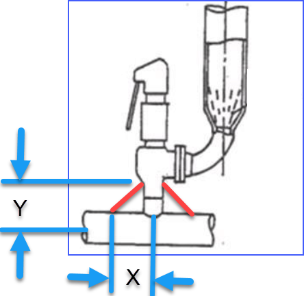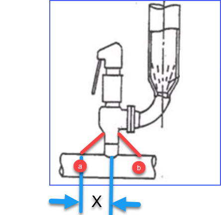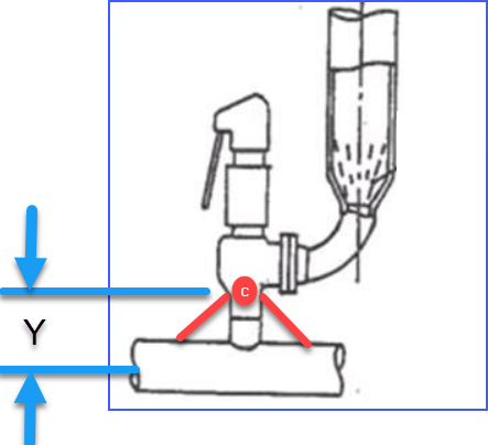 - Insert a node point on the branch piping distance Y (c) from the header pipe