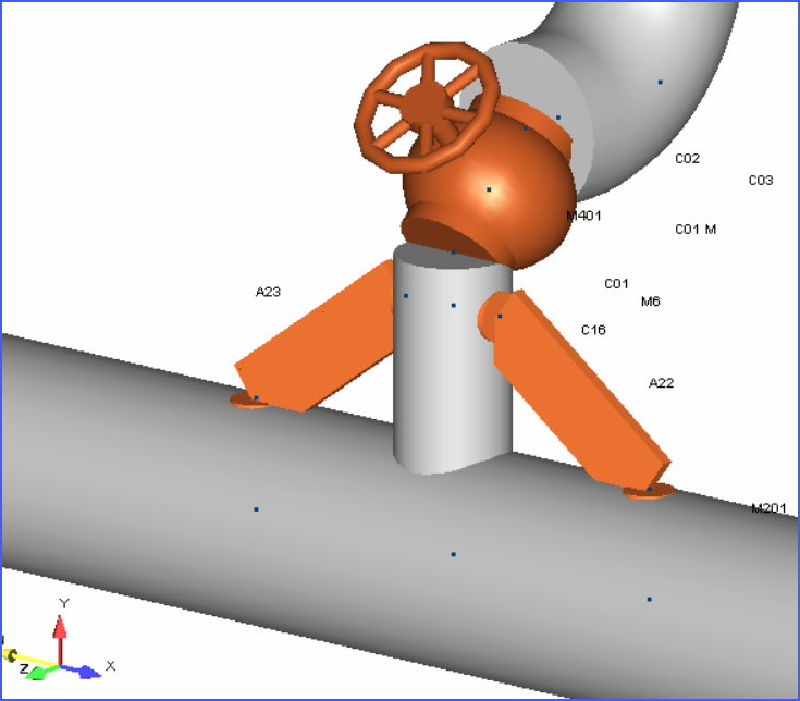 a. Following the techniques used in the Vessel Modeling approach in Help > Contents> Contents Tab> Modeling Approaches> Modeling Approaches> Vessel, insert a nozzle element at the surface of the pipe to take credit for the flexibility of the pipe wall.