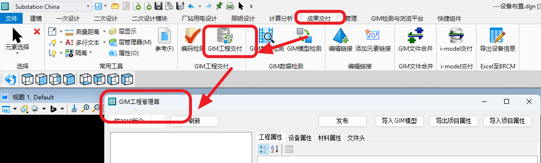 2.打开Substation China的工程管理器,找到原有工程并打开,打开GIM工程交付命令: