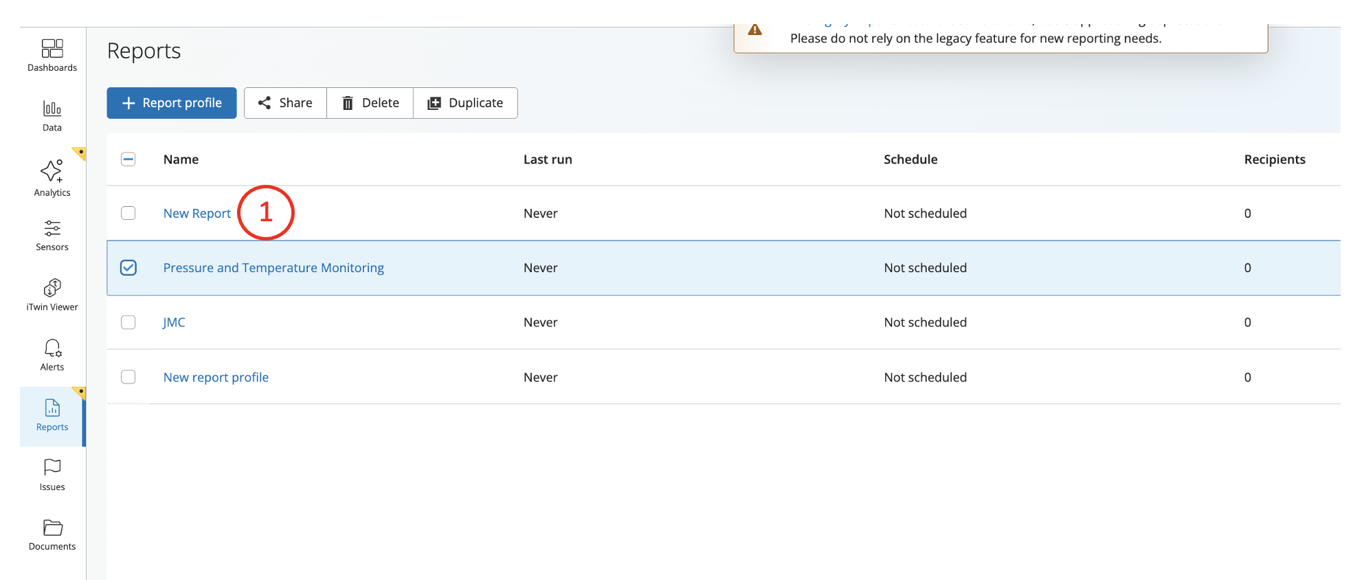 1. To edit an existing report, simply click on the name of the report, and it will take you to the Report configuration page.